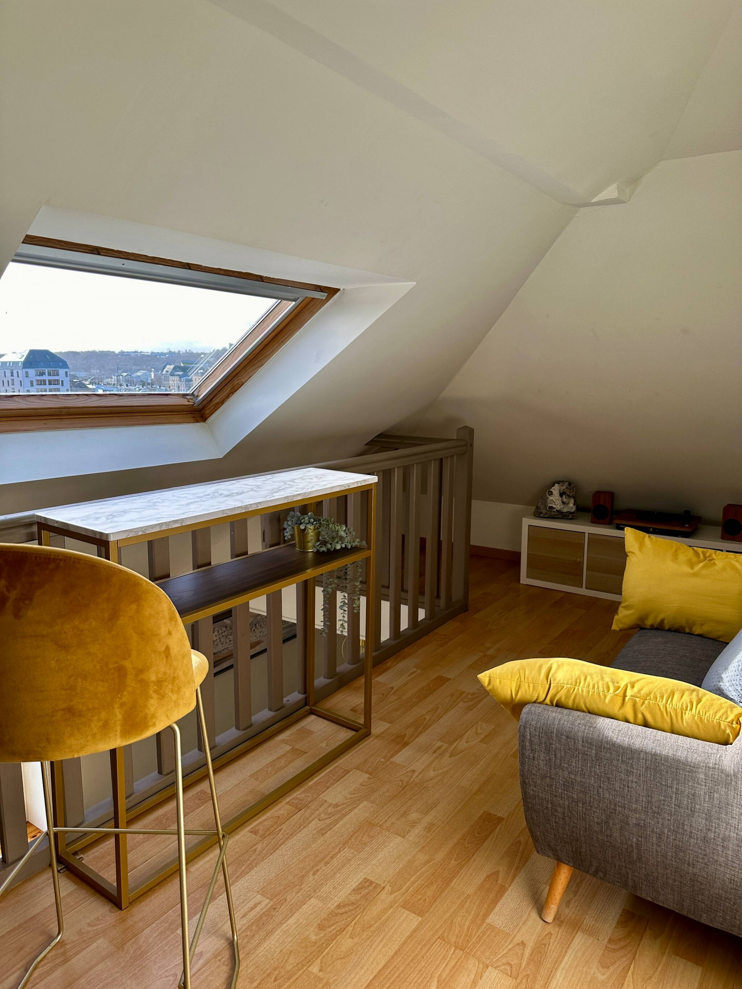 This large duplex apartment comprises a large living room opening onto a fully equipped kitchen, two bedrooms with double beds upstairs, a small office area, a separate toilet and a shower room.