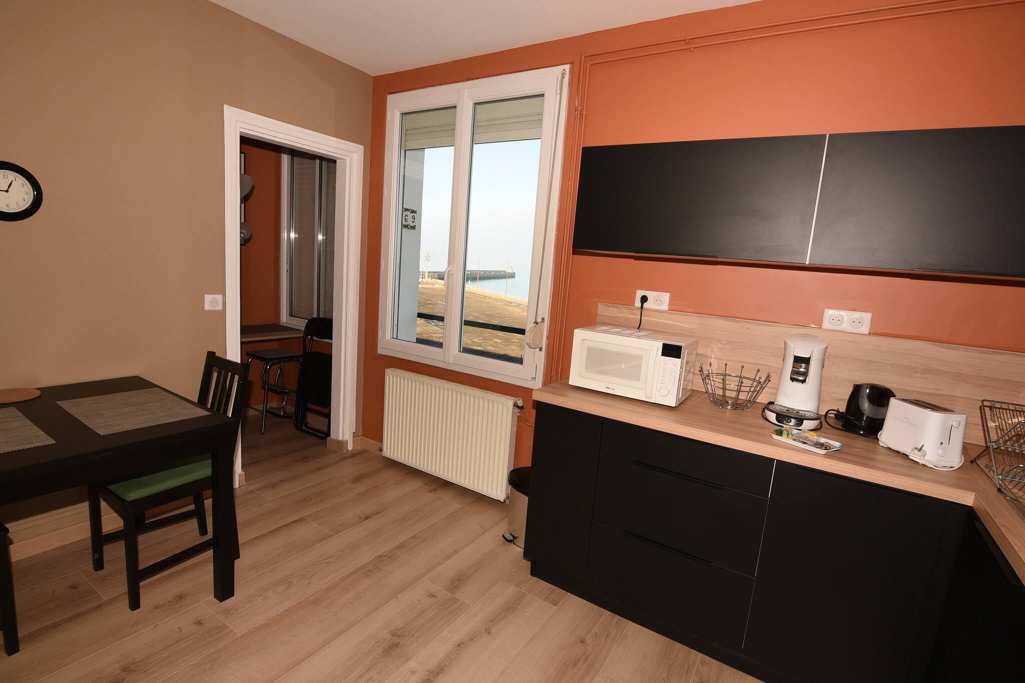 On the first floor, it is very bright and you can see the sea from the living room window!