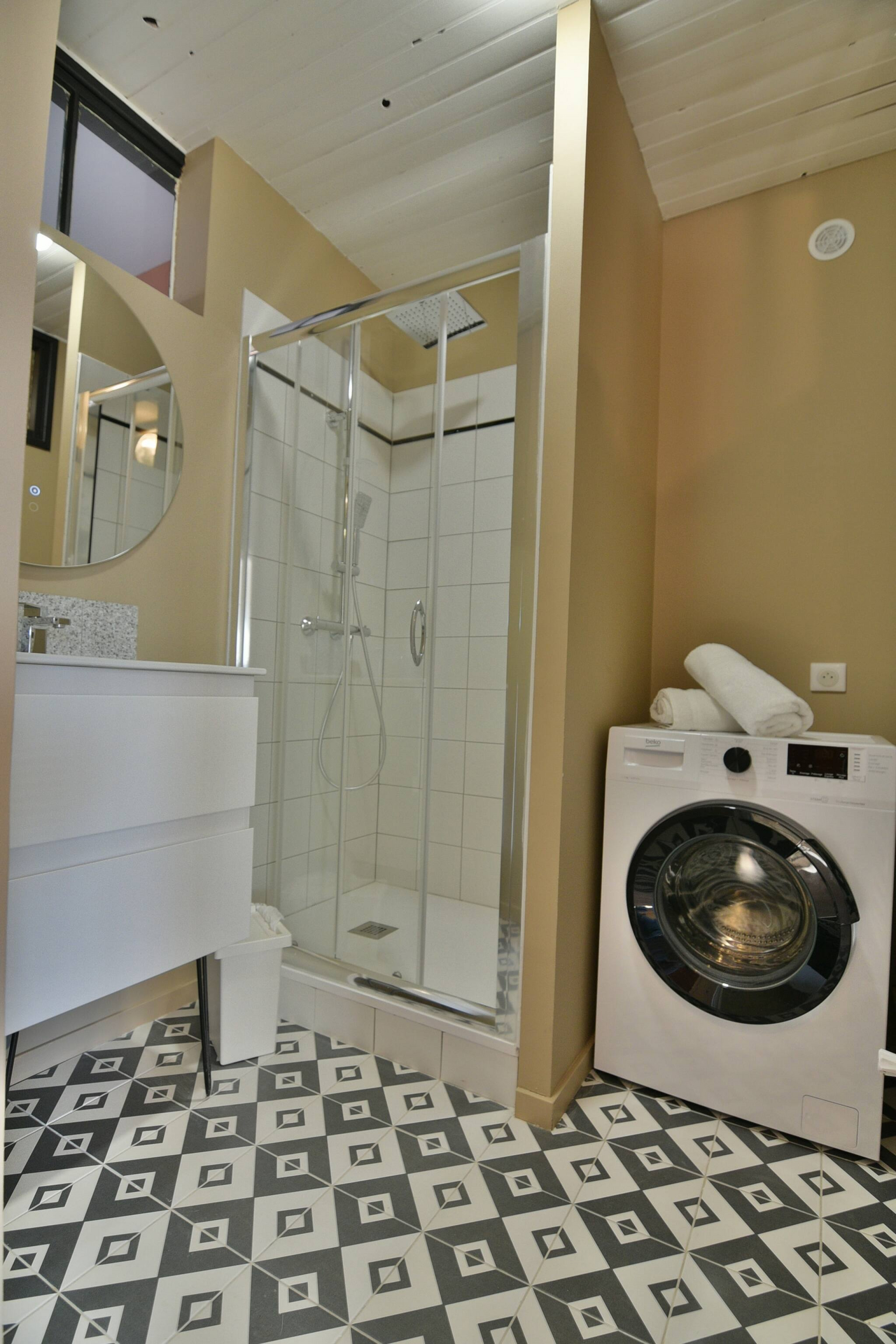 Tastefully decorated, it offers many amenities such as a dishwasher, microwave, hairdryer, and more. and is equipped with a shower room with toilet.