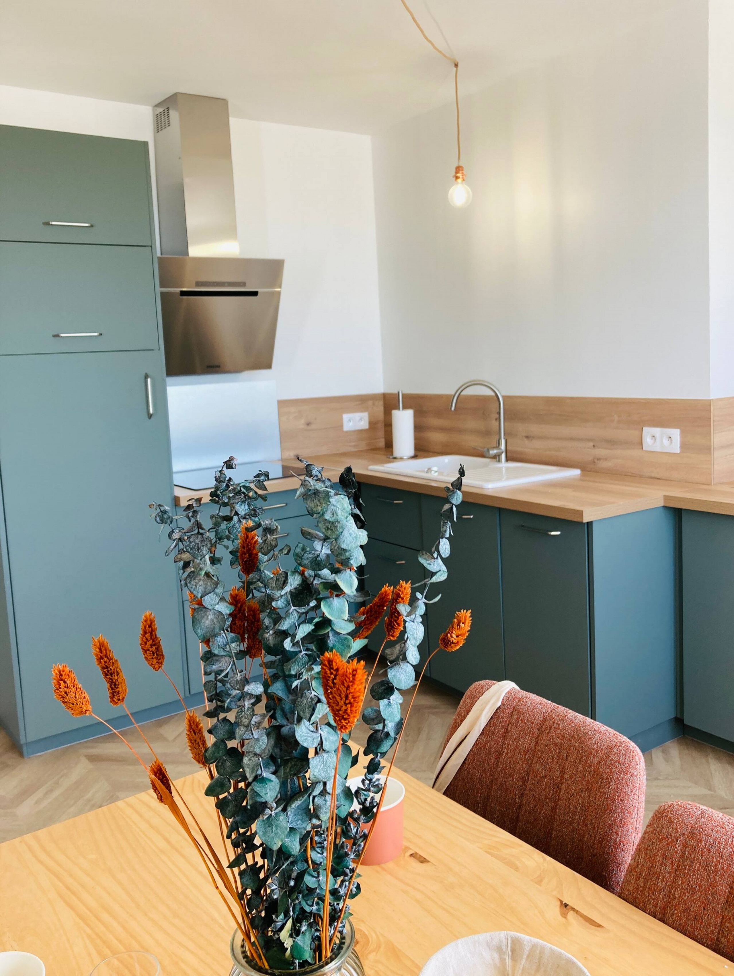 The accommodation consists of: a hall, living room, fully equipped kitchen with dishwasher, washing machine, oven and microwave.