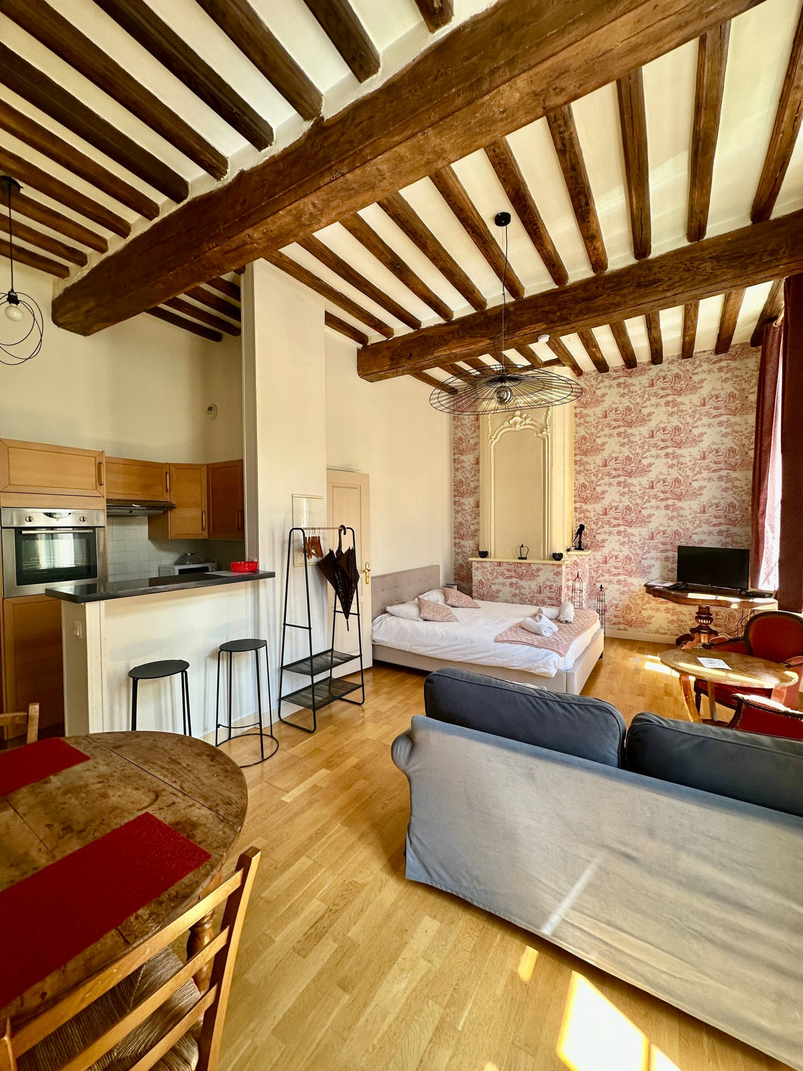 Very bright, it will charm you with its old parquet flooring and old beams on the 5m-high ceiling.