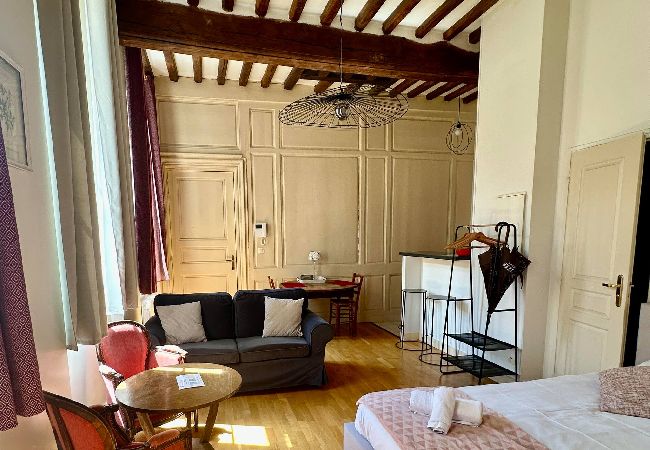 Emma's room (a nod to Gustave Flaubert's novel Emma Bovary) welcomes you for a romantic getaway in the heart of Dieppe town centre.