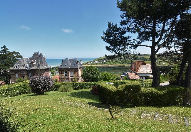 Les Pins Magnificent house with sea view under the pine trees, terrace in a wooded garden near Pourville beach (400m).