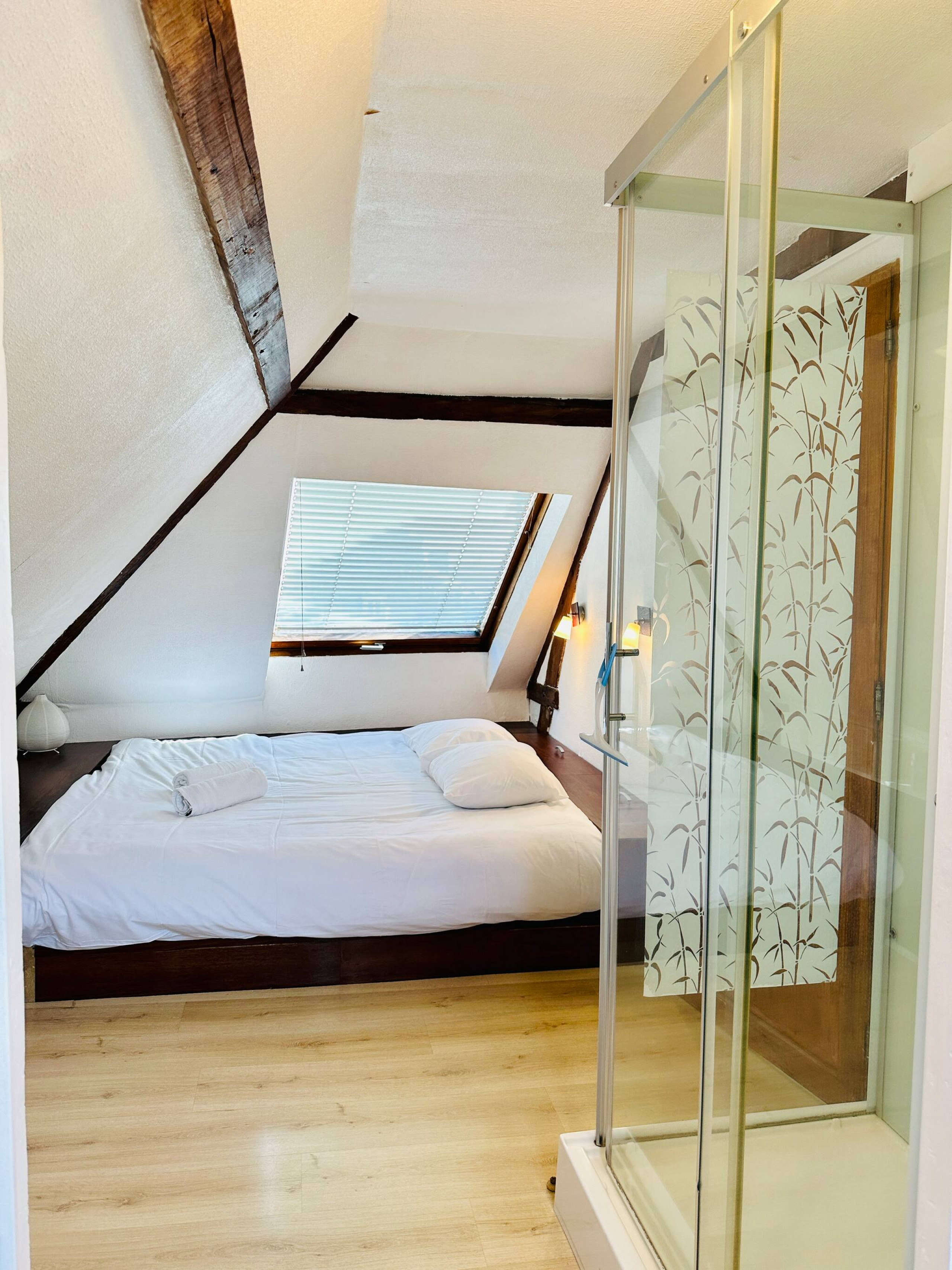 Les WC sont indépendants, la salle de bain est vaste possède une belle douche à l'italienne.