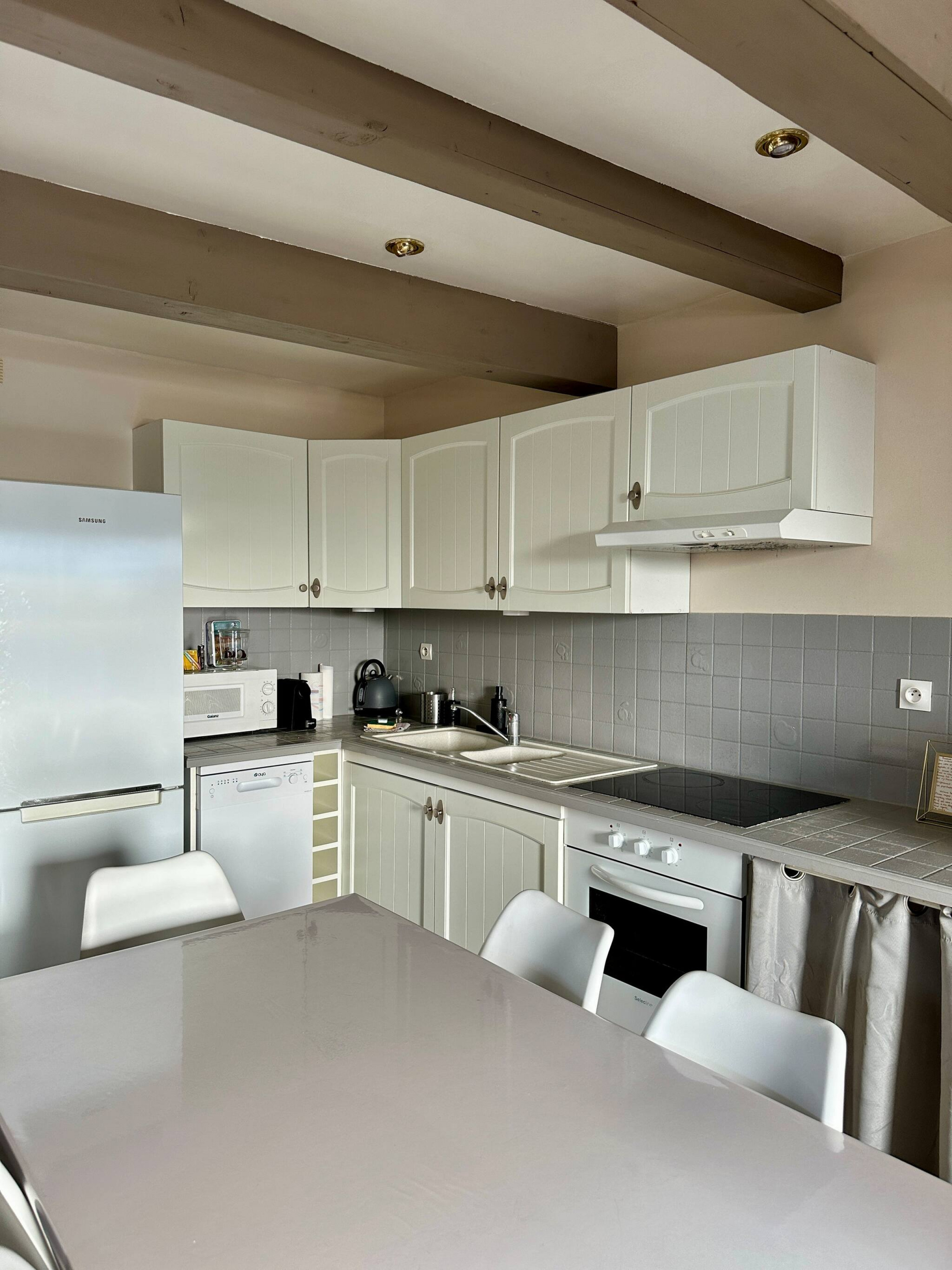 La cuisine équipée possède 1 lave vaisselle.