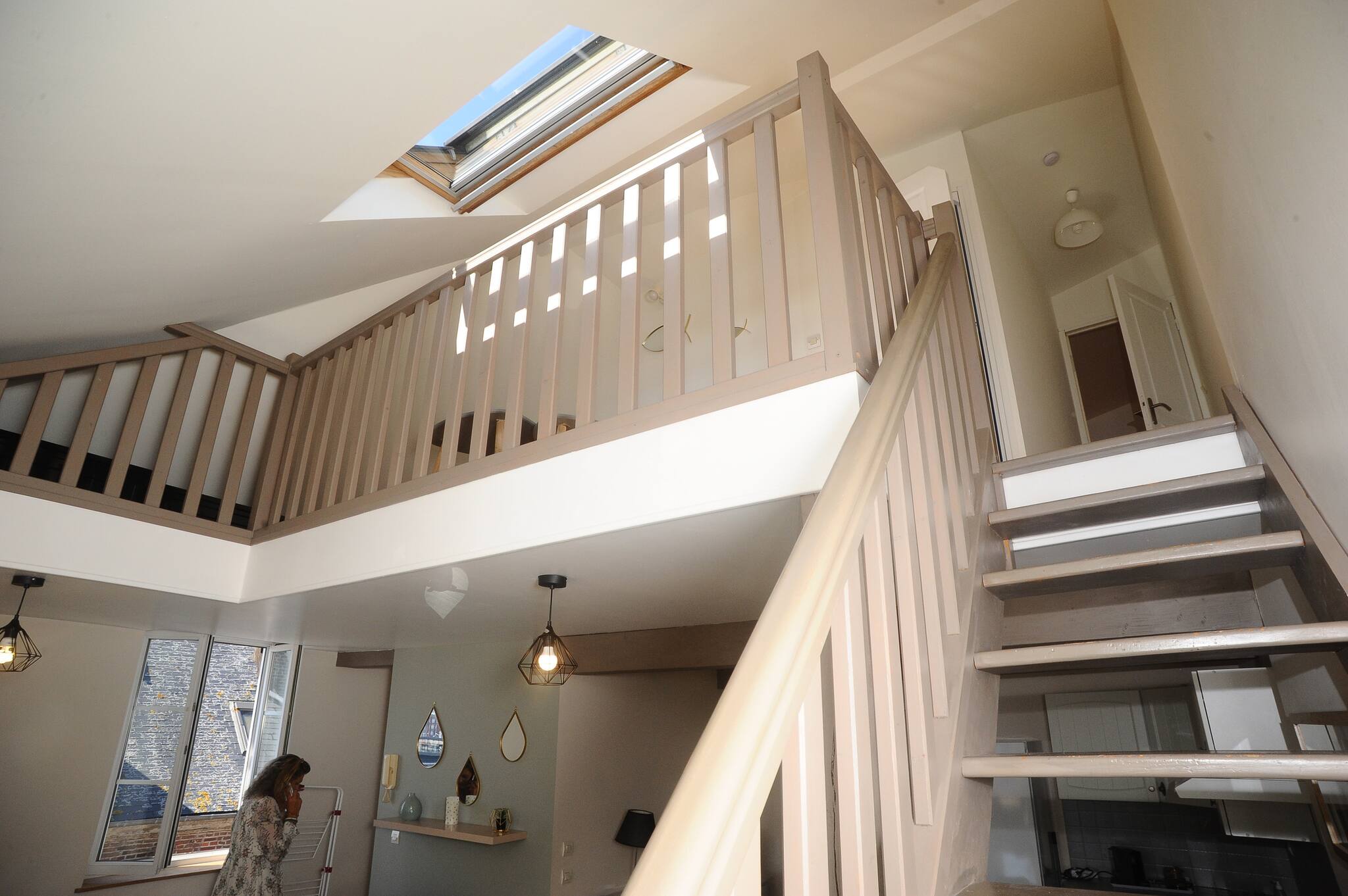 L'accès à l'appartement se fait par un escalier étroit et exigu.