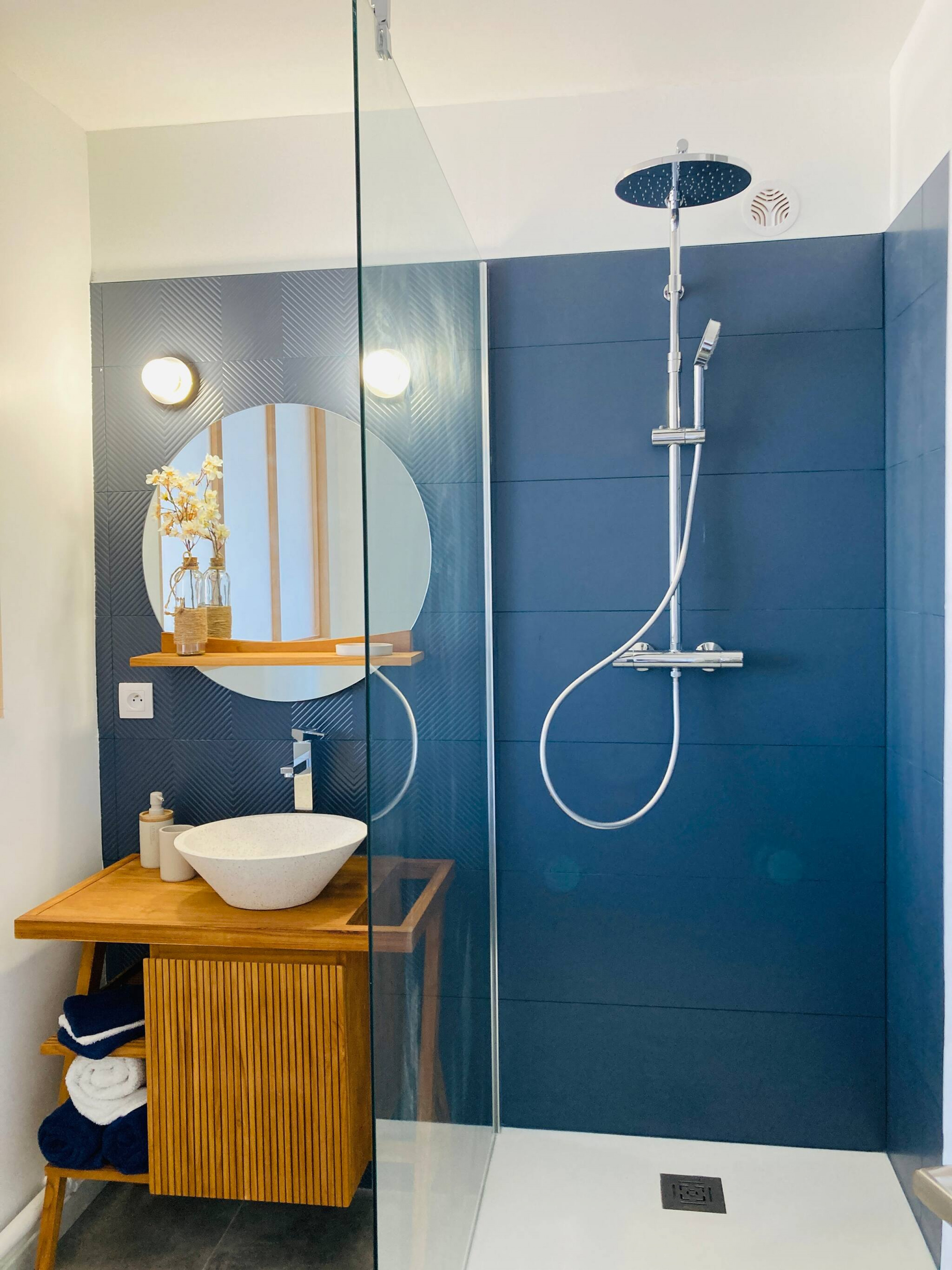 Les WC sont indépendants, la salle de bain est vaste possède une belle douche à l'italienne.