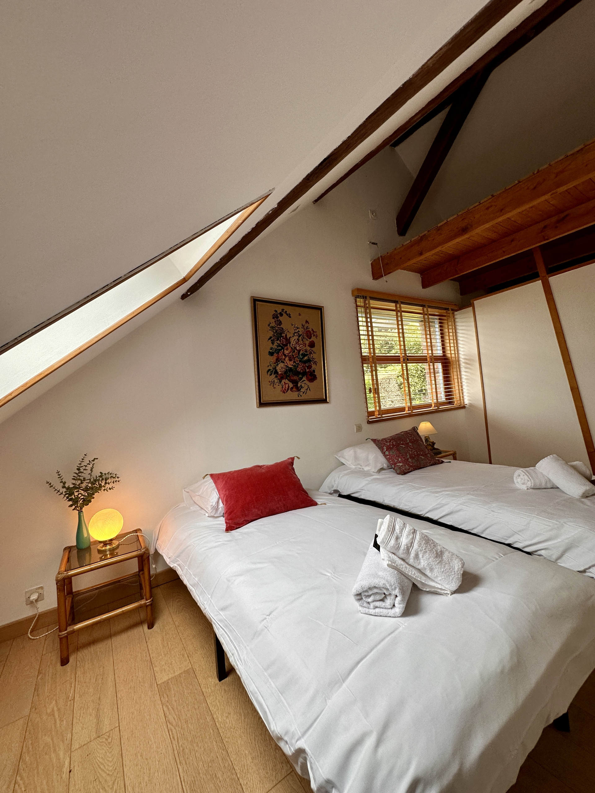 Au deuxième étage : 1 chambre avec un lit double de 140 x 190 cm et une salle d'eau.