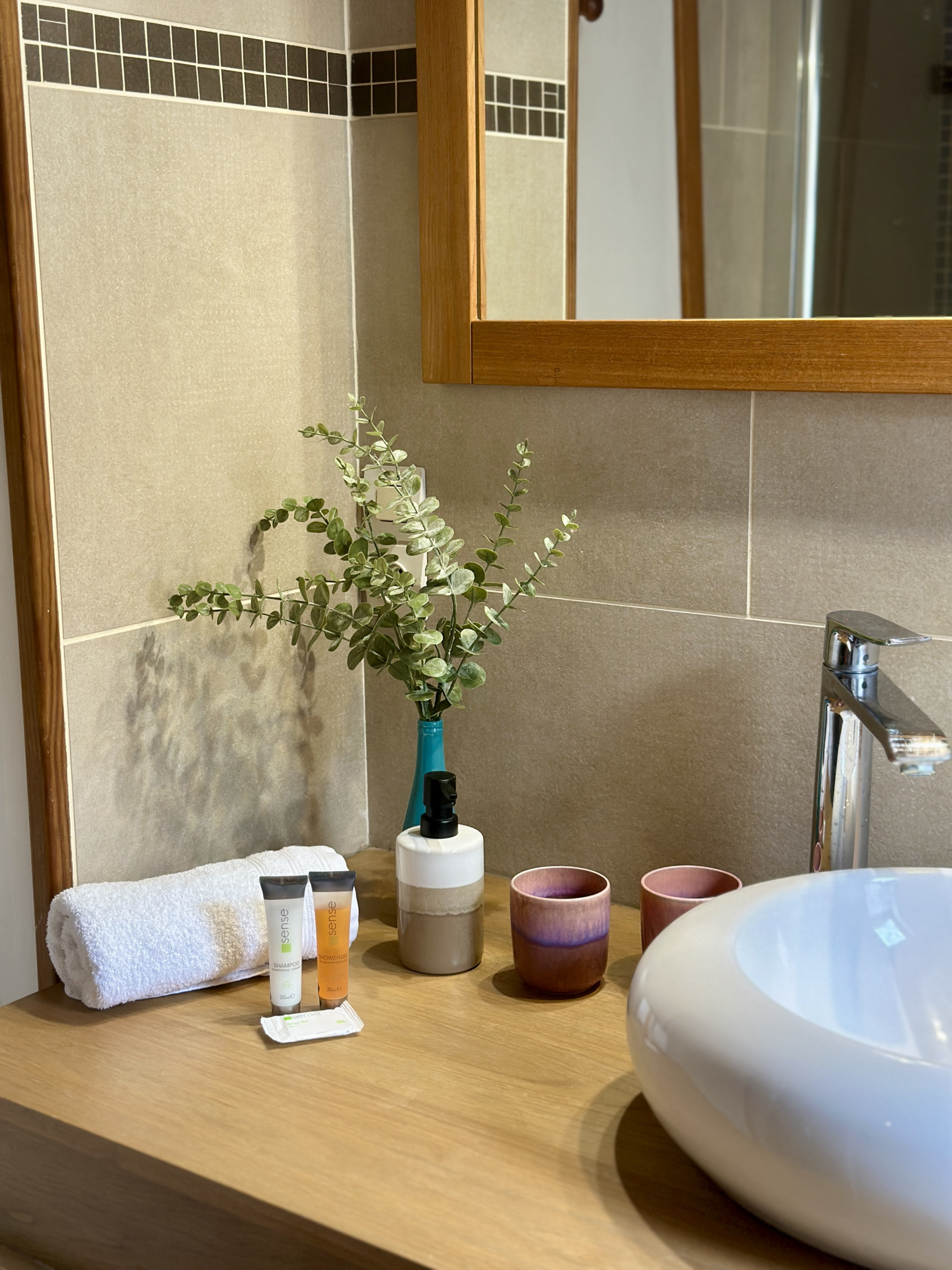À l'étage, vous trouverez une chambre avec un lit double, une deuxième chambre avec deux lits simples, un dressing, une salle de douche moderne et des toilettes séparés.