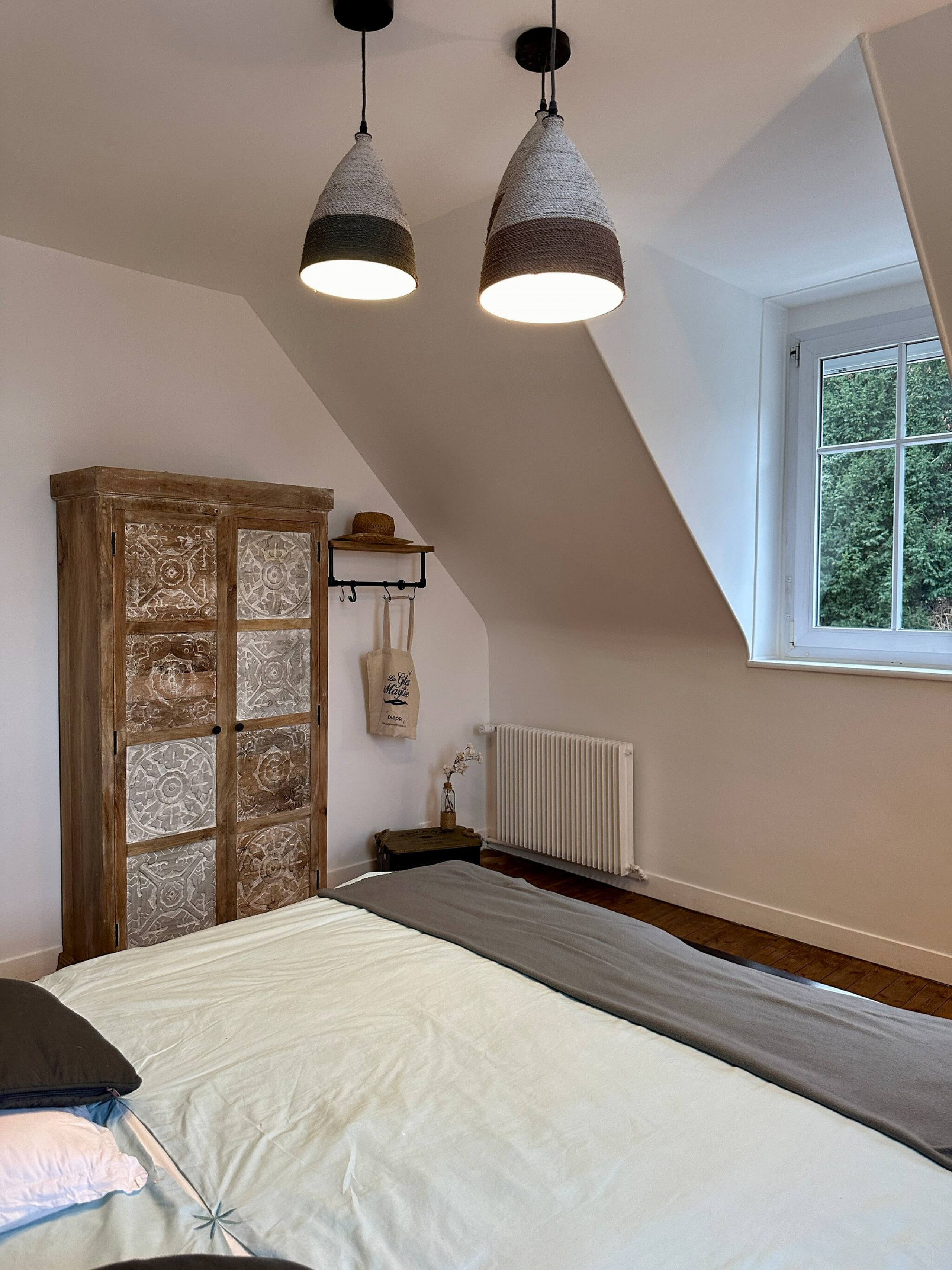 Deuxième étage : deux chambres mansardées avec trois lits simples.