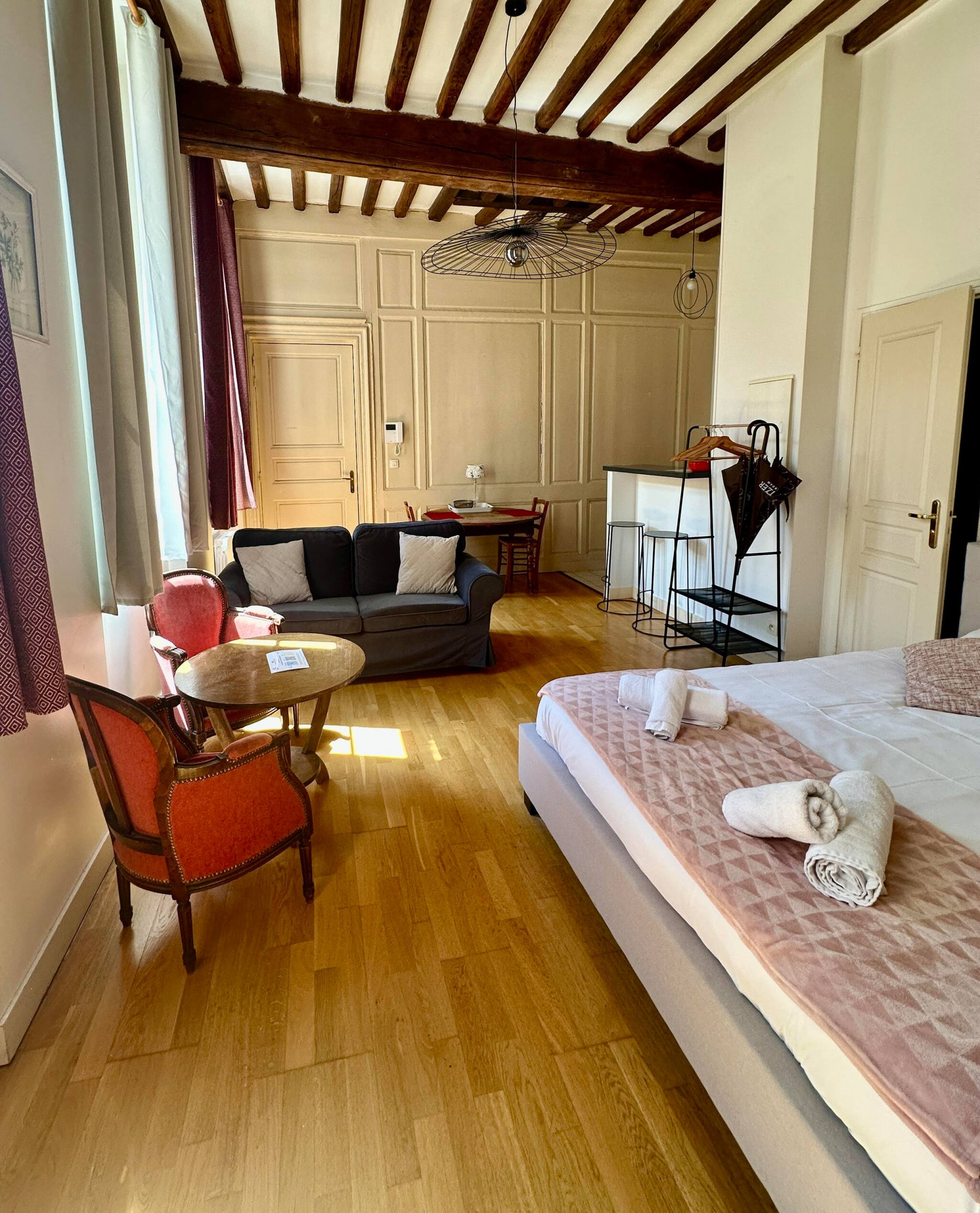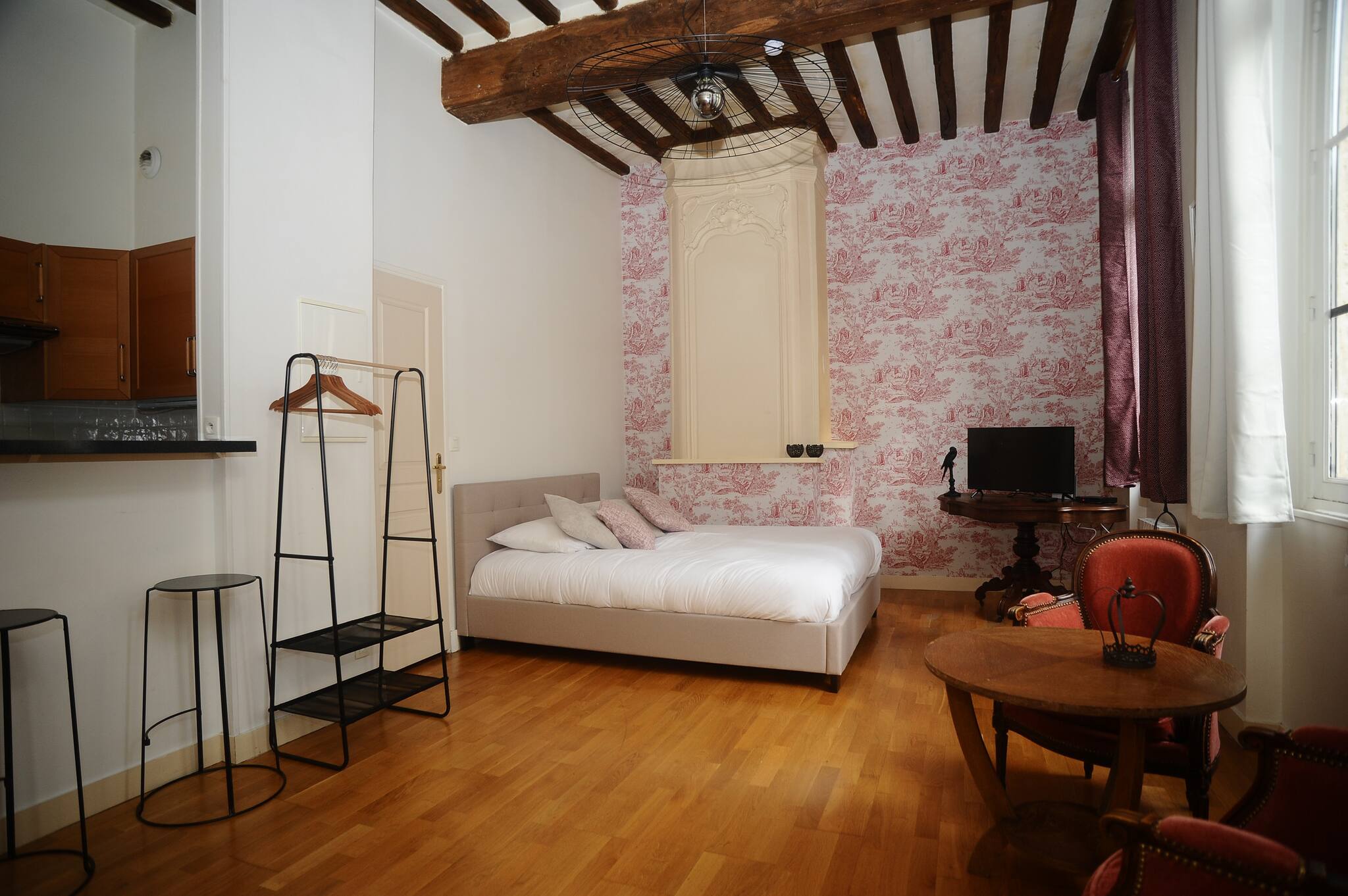Au premier étage d'un ancien hôtel particulier du XVIIIe siècle, ce grand studio lumineux vous séduira par ses équipements complets.